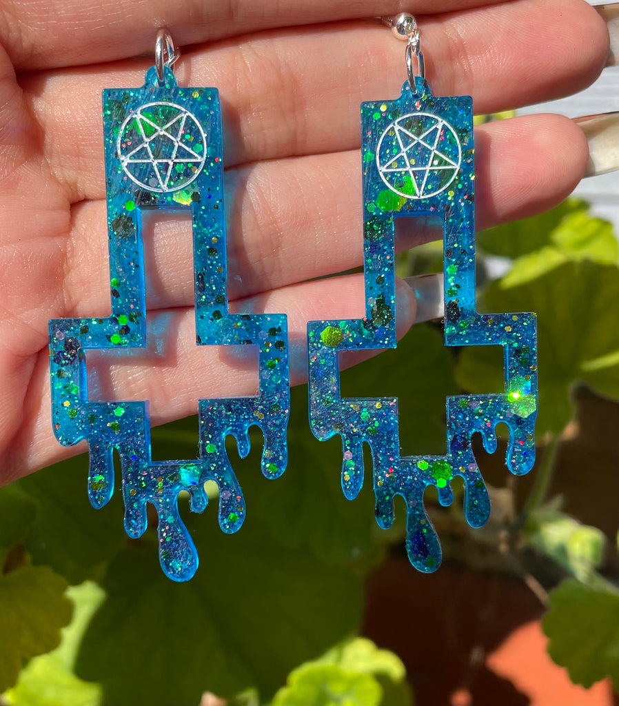 Dripping cross earrings