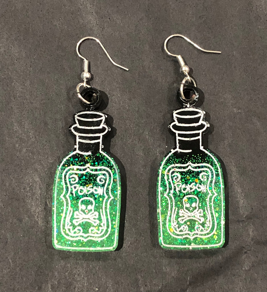 Poison bottle earrings
