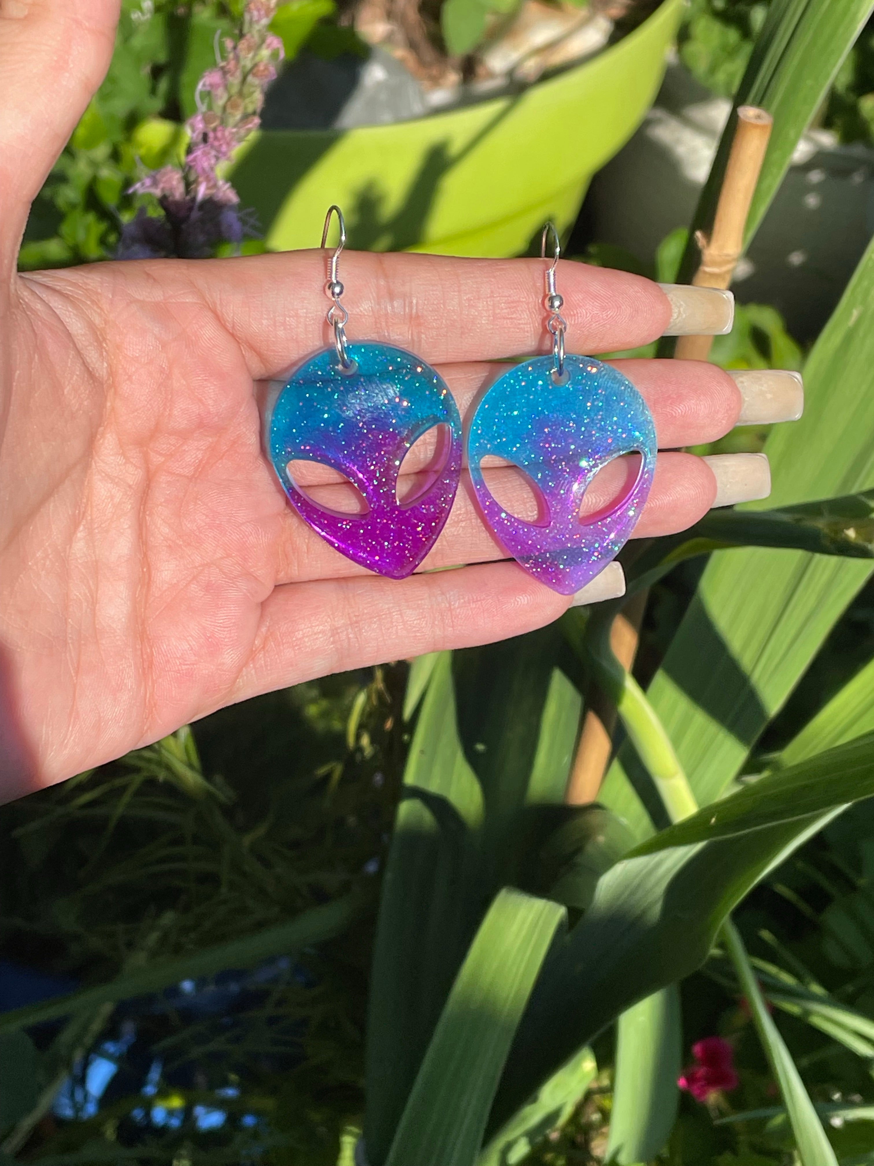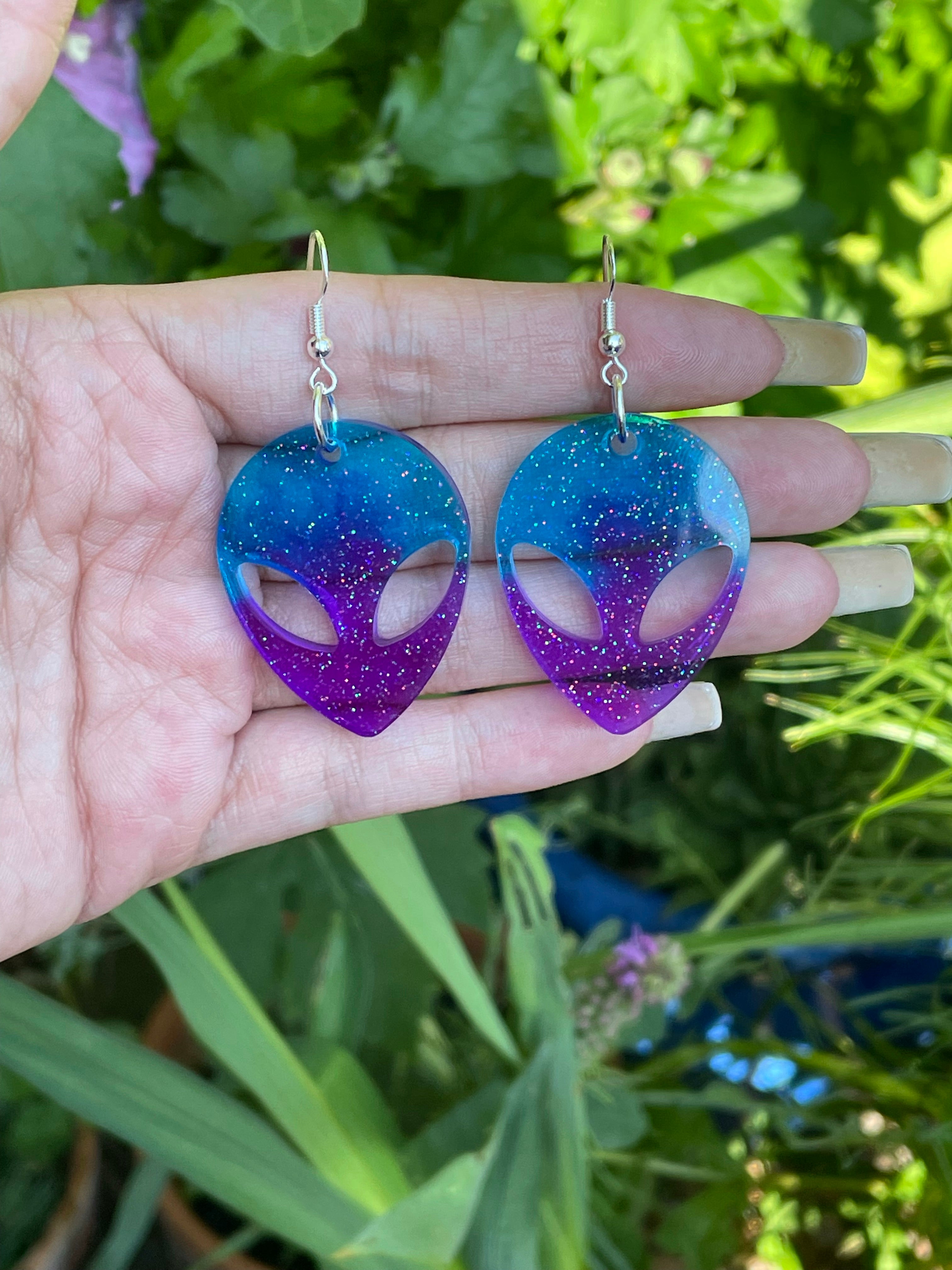Add some intergalactic ness  to your outfit with our cute and quirky 2 tone alien 👽 earrings.