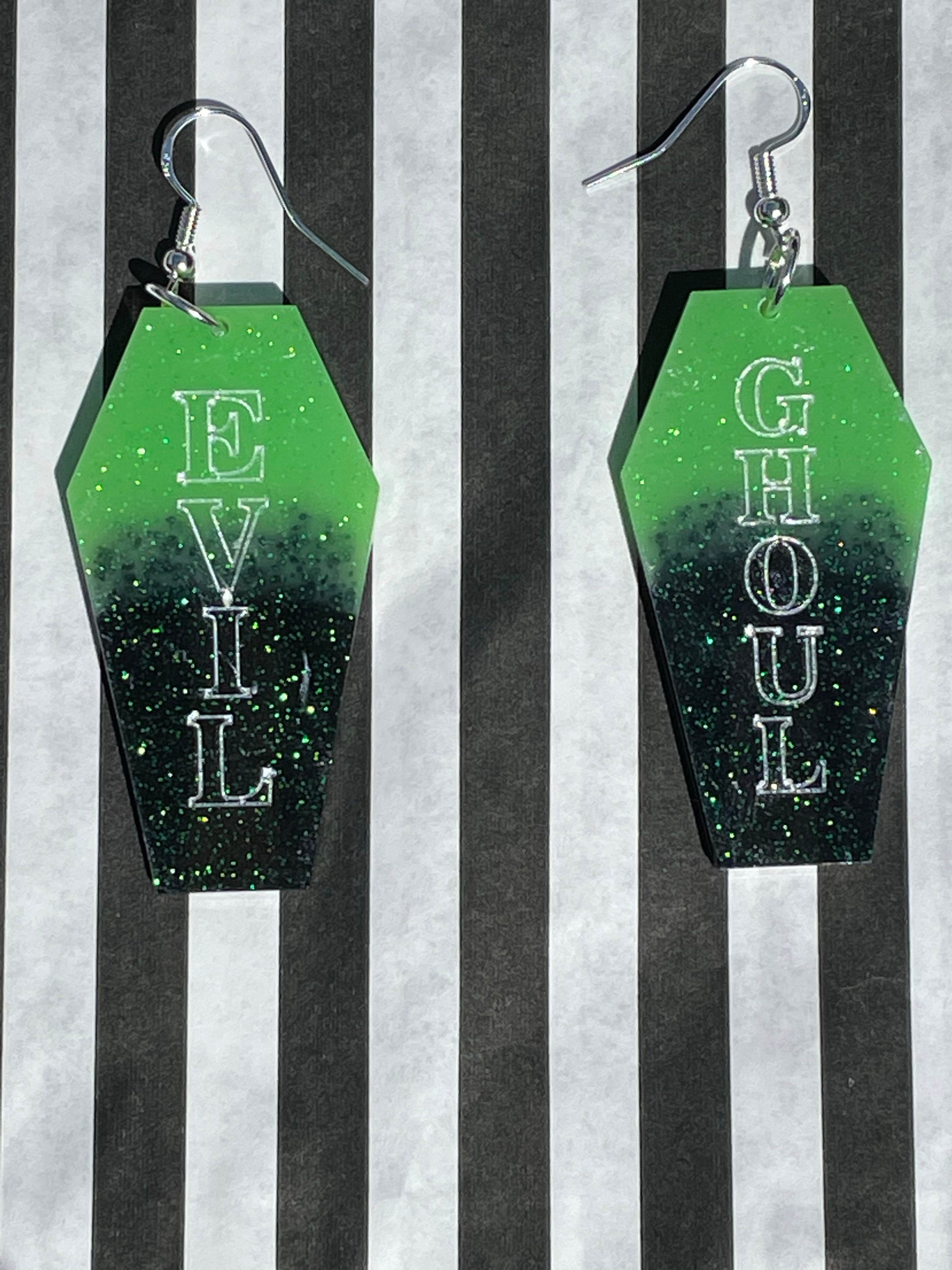 Add some colour to your outfit with these free and black evil ghoul earrings!