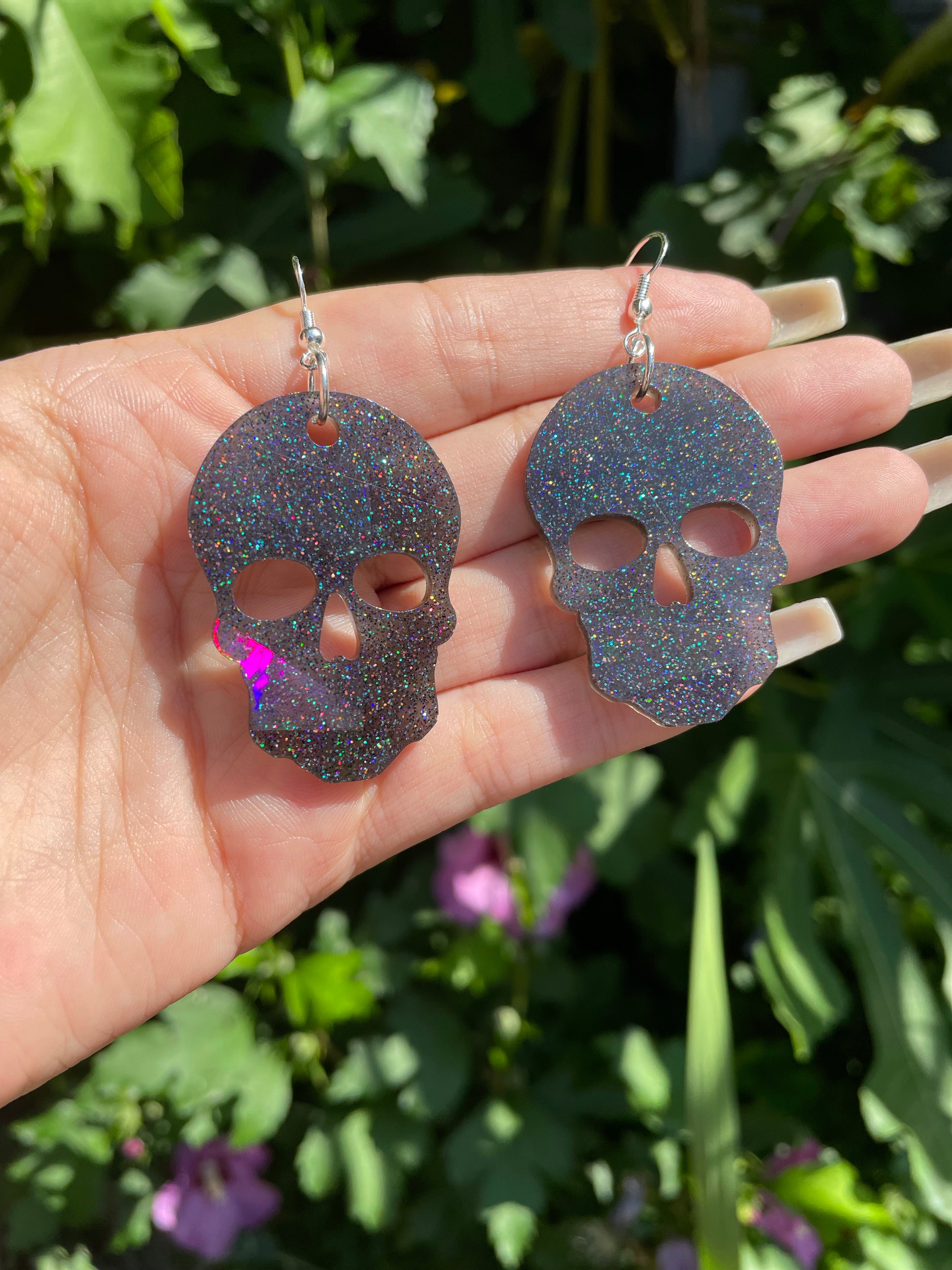 Add some spooky ness to your outfit with our cute and quirky holographic Ā skull š earringsĀ
