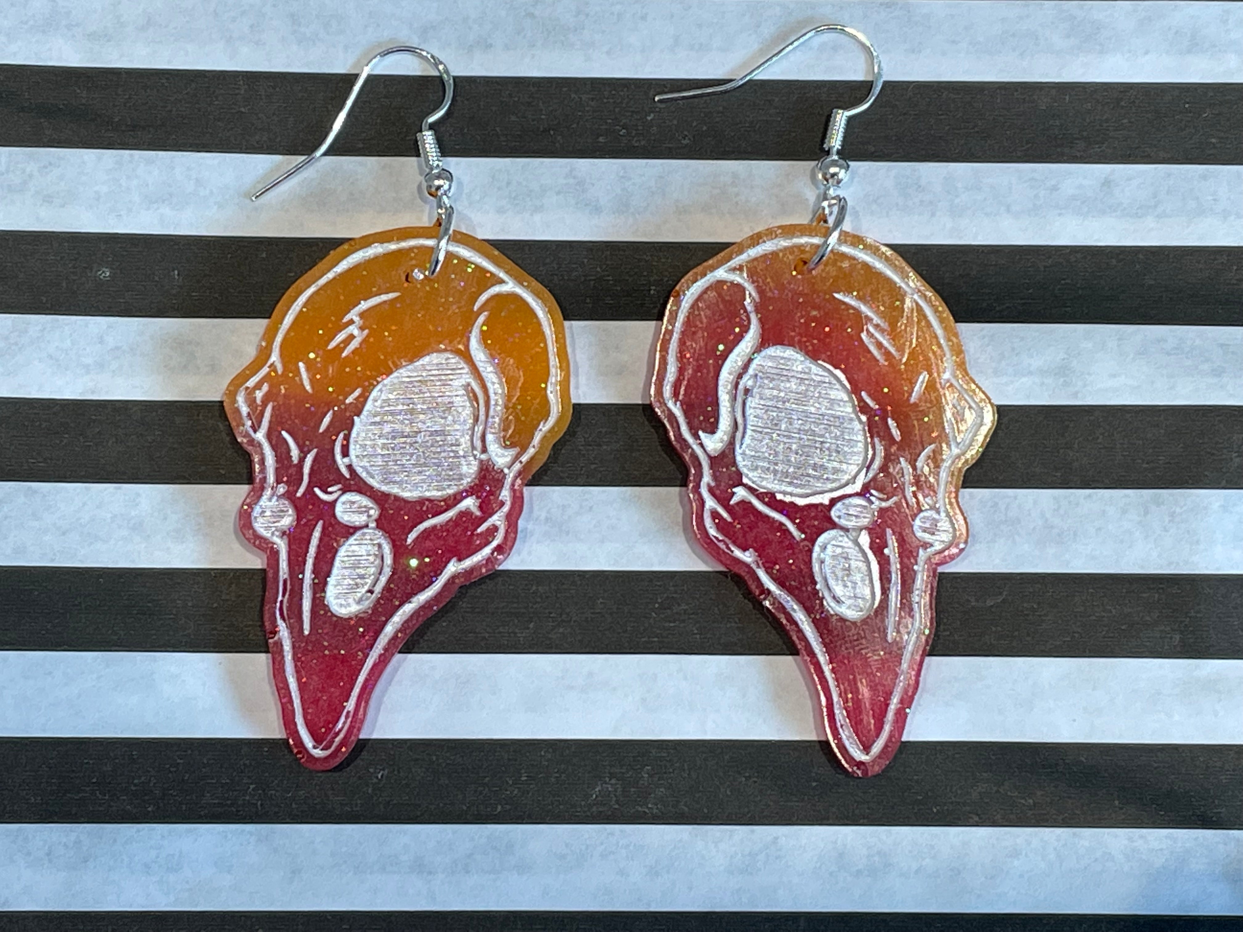 Add some colour to your outfit with these orange and metallic red Raven skulls !