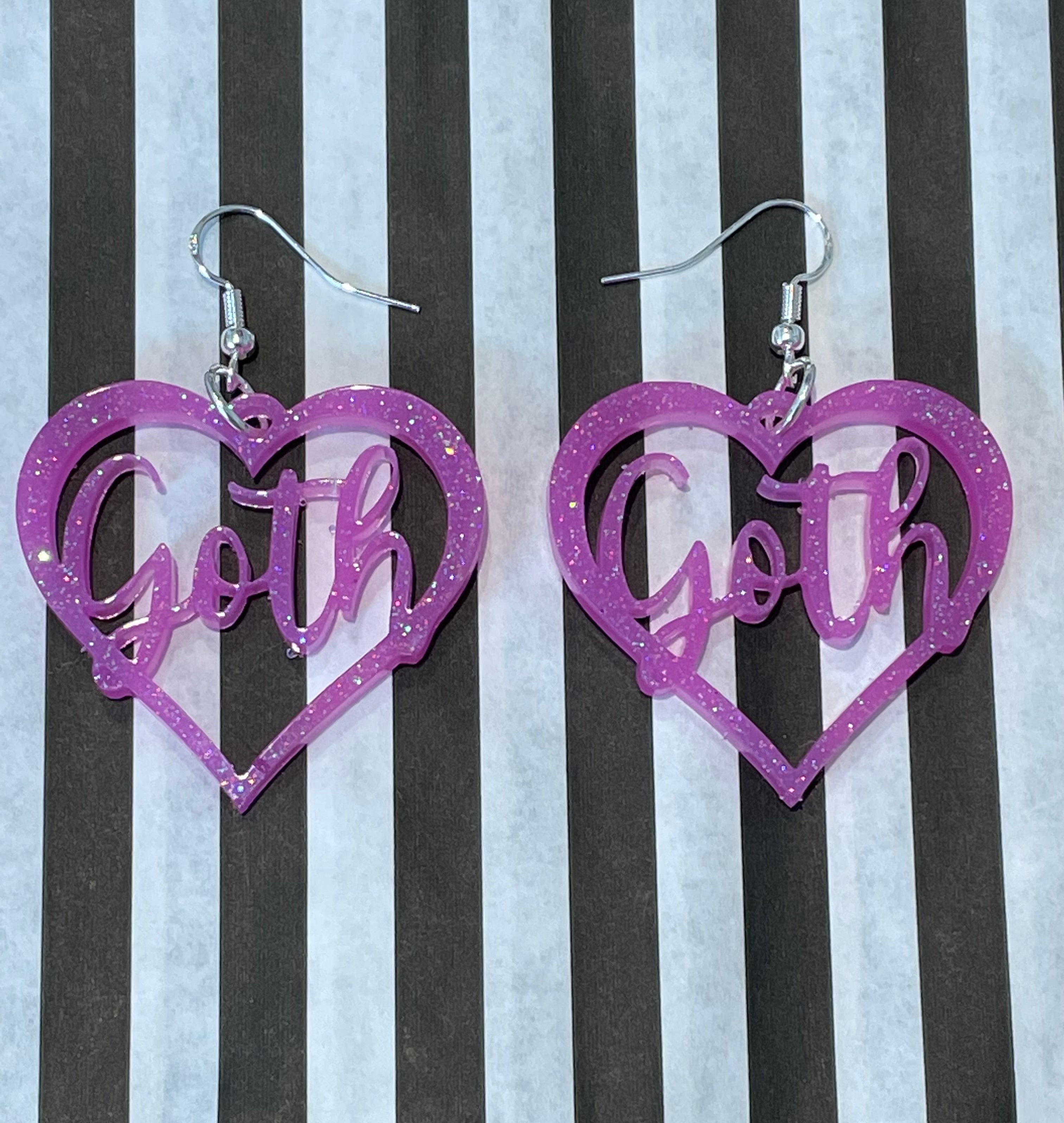 Add some colour to your outfit with these pink goth heart earrings